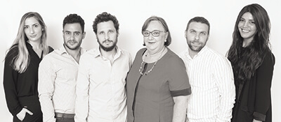 מימין לשמאל: גיל מרקמן - סמנכ"ל לקוחות, איל פישר - סמנכ"ל סחר, הלנה קצן - מנכ"ל ובעלים, מורן גלעדי - סמנכ"ל תפעול, שניר מזוז - סמנכ"ל כספים, רעות דנן המרמן - סמנכ"ל מעגל חיי עובד.